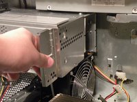 To remove the drive from the cage, remove the four screws on the side of the drive, and pull the drive out of the cage.