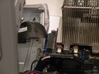 It's likely that there is a cable clip holding the ribbon cable to the case.