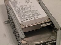 To remove the hard drives from the cages, remove the four screws on the sides of the cage that are connected to the drives, than slide the drives out.