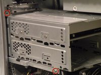 To remove the drive from the cage, remove the four screws on the side of the drive, and pull the drive out of the cage.