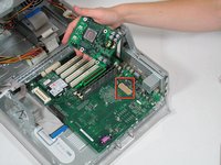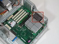 First you want to remove the fan. Remove the two screws on the back of the computer in the upper left hand corner.
