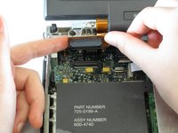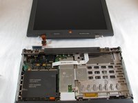 Loosen the ribbon cables connecting the keyboard to the computer by using a plastic opening tool to lift the tabs on either side of the cable port.