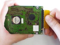 Rotate the hard drive towards yourself to access the ribbon cable and then gently pull up on the ribbon cable connector to remove the cable.
