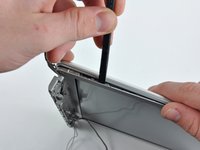 Insert a spudger in the space between the front bezel and the rear display bezel near the top left corner.