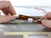 Carefully disconnect the microphone and power cables from the logic board. Using your fingernails or a dental pick, carefully pry the connectors from their sockets. Make sure you're pulling only on the connector and not on the socket.