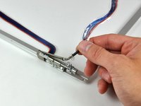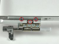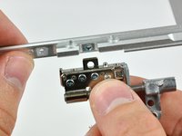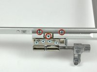 Remove the T8 Torx screw closer to the display on either side of the hinge (two screws total).