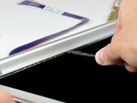 Insert the flat end of a spudger between the front display bezel and the plastic rim attached to the rear bezel near the lower left corner of the display.