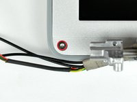 Disconnect the Airport antenna cable at the black connector, making sure you pull only on the black rubber portion of the connector.