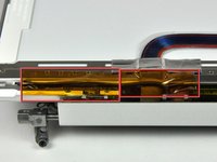 Remove the orange tape securing the trackpad ribbon to the logic board.