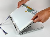 Remove the T6 Torx screw from the bottom left corner of the display assembly. The computer casing will not allow the screwdriver to be inserted directly into the screw, so be careful not to strip the screw.