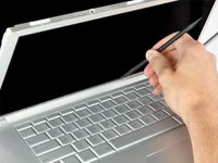 Open the computer with the display facing you and rotate the display back as far as possible.