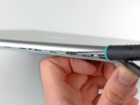 Insert the flat end of a spudger between the front display bezel and the plastic rim attached to the rear bezel near the lower right corner of the display.