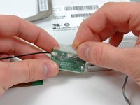 Disconnect the Airport antenna cable at the gold connector, making sure you pull only on the gold metal portion of the connector.