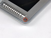 While carefully prying the rear display bezel away from the display assembly, use a small flathead screwdriver to pry the small steel clip nearest the bottom right corner of the display away from the edge of the front display bezel.