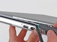 Insert the flat end of a spudger between the rear display bezel and the plastic surround of the front display bezel near the lower left corner of the display.