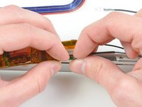 If necessary, use the tip of a spudger to remove the small piece of foam tape from the side of the left speaker.