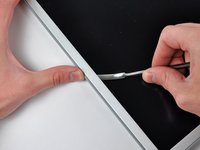 Insert the flat end of a spudger between the rear display bezel and the plastic surround of the front display bezel near the lower left corner of the display.