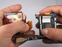Carefully remove the left ribbon-wire from the top camera panel by pulling where the wire connects to the top.