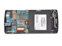 Remove the back cover by pressing on the bottom section of the phone and sliding the bottom piece downward.