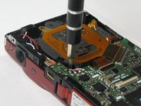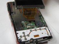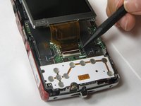Gently lift up on the left side of the LCD and slowly pull it to the left side of the camera but do not remove entirely, there is a ribbon connector.