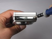 Remove the 2.5mm Philips #0 screw at the top of the camera.