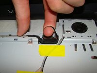 Pull the fabric loop connected to the power cable to remove the power cable jack from its connection.