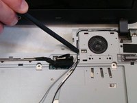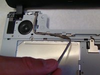 After the back cover is removed, lay the laptop on a flat surface, with the bottom facing up.