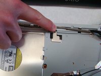 Lift the drive out with the tab on the tray.