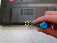 Locate the screw (Length: 4.8 mm) holding down the panel, which is near the edge of the laptop. Unscrew it with your phillips #0 screwdriver.