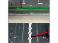 Using PH#1 screwdriver, loose the four screws of each corner (highlighted in green boxes).