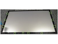 Using PH#1 screwdriver, begin to loose the ten screws of the plastic frame from the left corner (green boxes).
