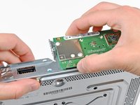 Grasp the hard drive assembly and press the release button while lifting its front edge.
