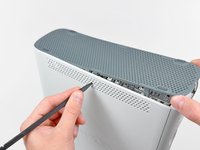 Use the tip of your spudger to release the clip on the top vent nearest the back of the Xbox.