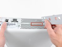 Use the tip of your spudger to release the clips on the bottom vent nearest the back of the Xbox.