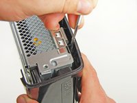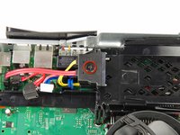 Rotate the spudger away from the console, prying the edge of the fan vent up until the two plastic clips come free.