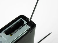 Insert a metal spudger between the fan vent and top bezel along the left side of the console.