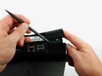 Rotate the spudger away from the console, prying the edge of the fan vent up until the two plastic clips come free.
