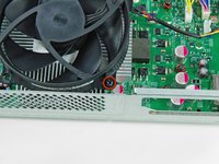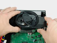 Unscrew the two 11.7 mm Phillips screws securing the fan to the heat sink in the bottom right and top left corners of the fan.