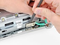 Use the tip of your spudger to release the clip on the top vent nearest the back of the Xbox.