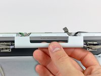 Remove the two pieces of tape over the display data/microphone cables near the lower edge of the display.