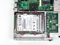 Remove the four 4mm Phillips screws securing the hard drive to the metal framework.
