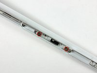 Remove the two Phillips screws securing the left AirPort antenna to the clutch hinge frame.