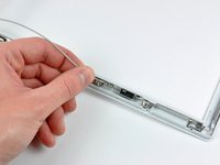 Remove the pieces of tape covering the display data and microphone cables near the bottom edge of the display.