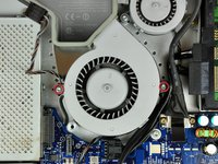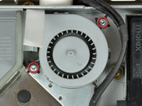 Remove the two T8 Torx screws securing the upper left fan to the chassis.