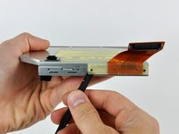 Using its attached black tab, pull the display data cable connector up off the logic board.