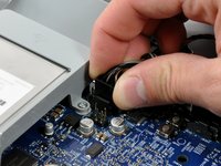 Loosen the three Phillips screws securing the rear panel to the iMac.