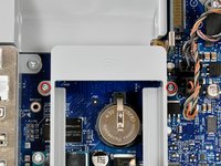 Remove the two 5.5 mm T6 Torx screws securing the AirPort bracket to the logic board.