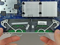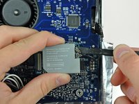 Remove the two Phillips or two T6 Torx screws securing the AirPort/Bluetooth board to the logic board.
