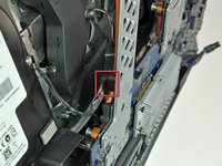 Disconnect the hard drive fan by pulling its connector away from the face of the logic board.