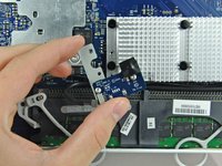 Remove the 6.1 mm T8 Torx screw from both sides of the heat sink nearest the logic board (two screws total).